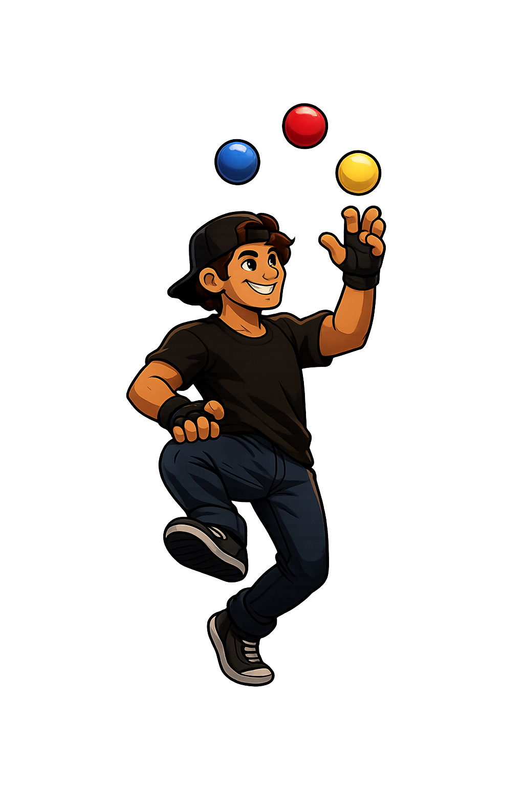 - Akrobatik . Jonglage, Fussballjonglage, Einradfahren,
